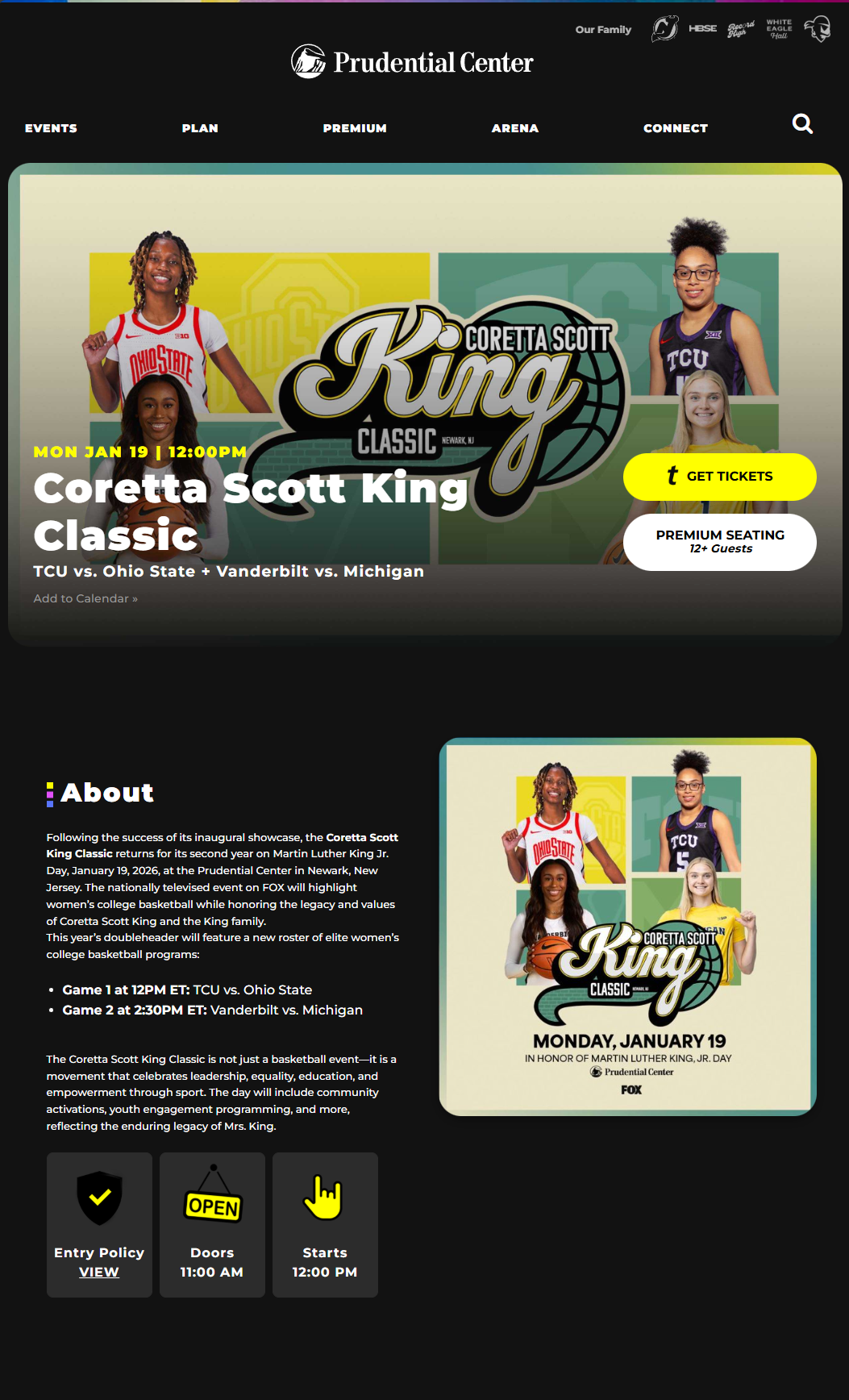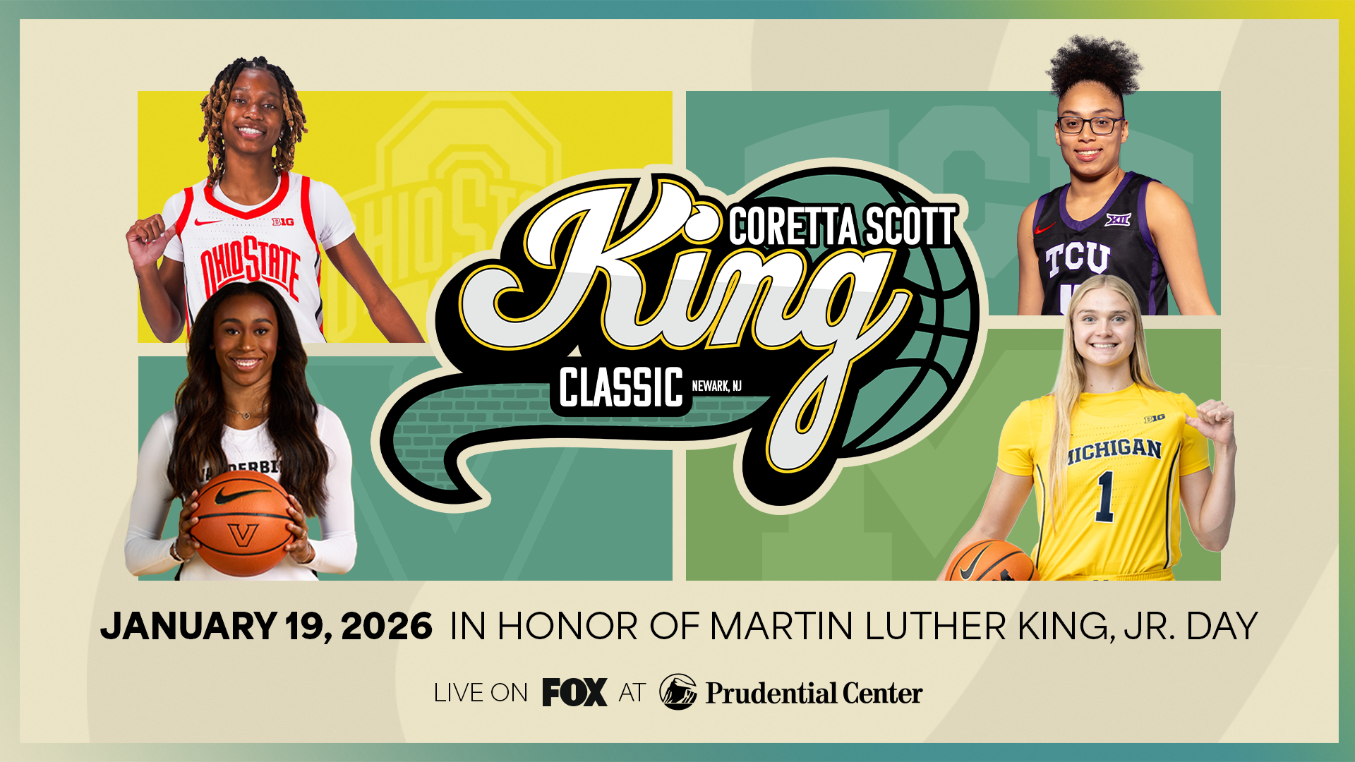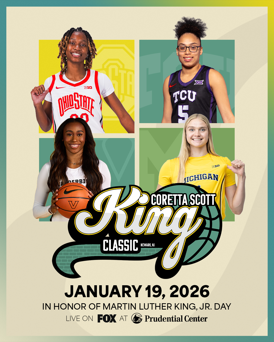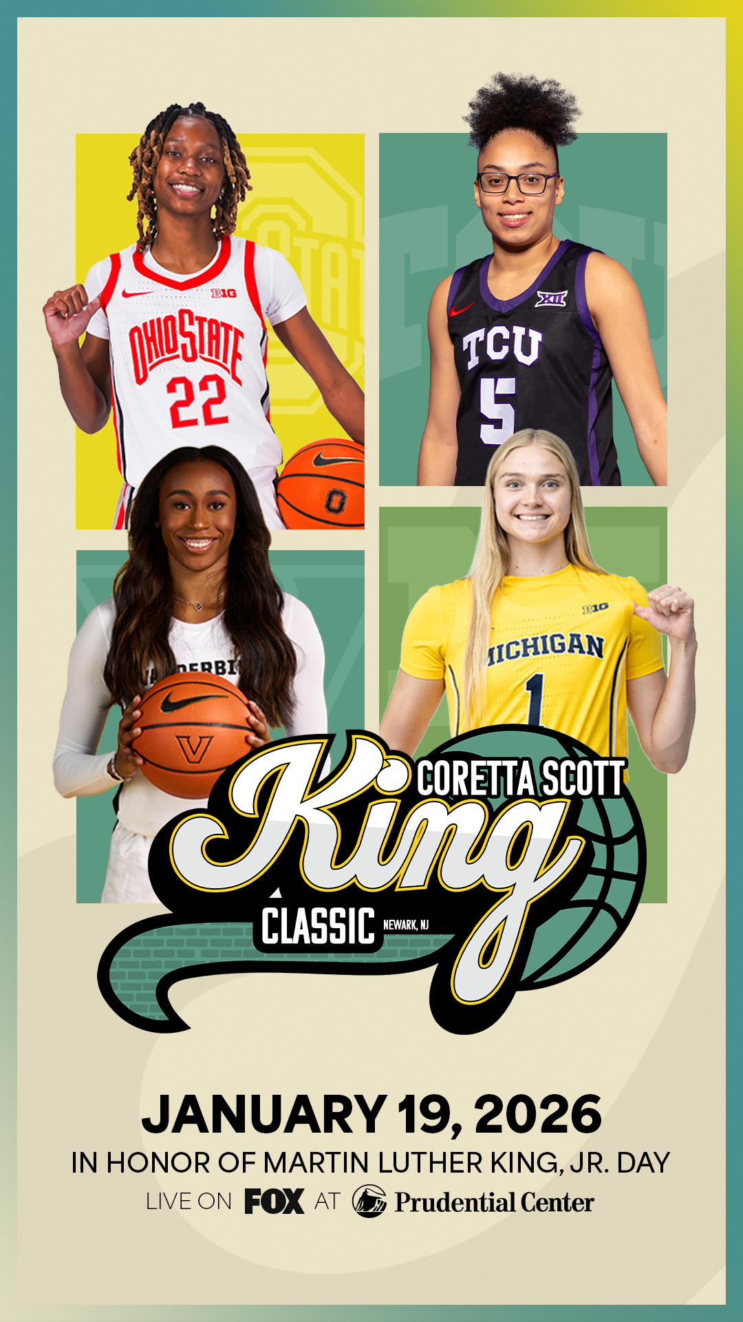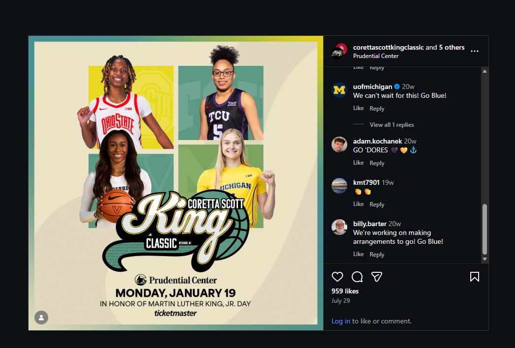 For this project, I was tasked with creating social graphics for the 2026 Coretta Scott king Classic. these socials were featured by the prudential center socials and website.